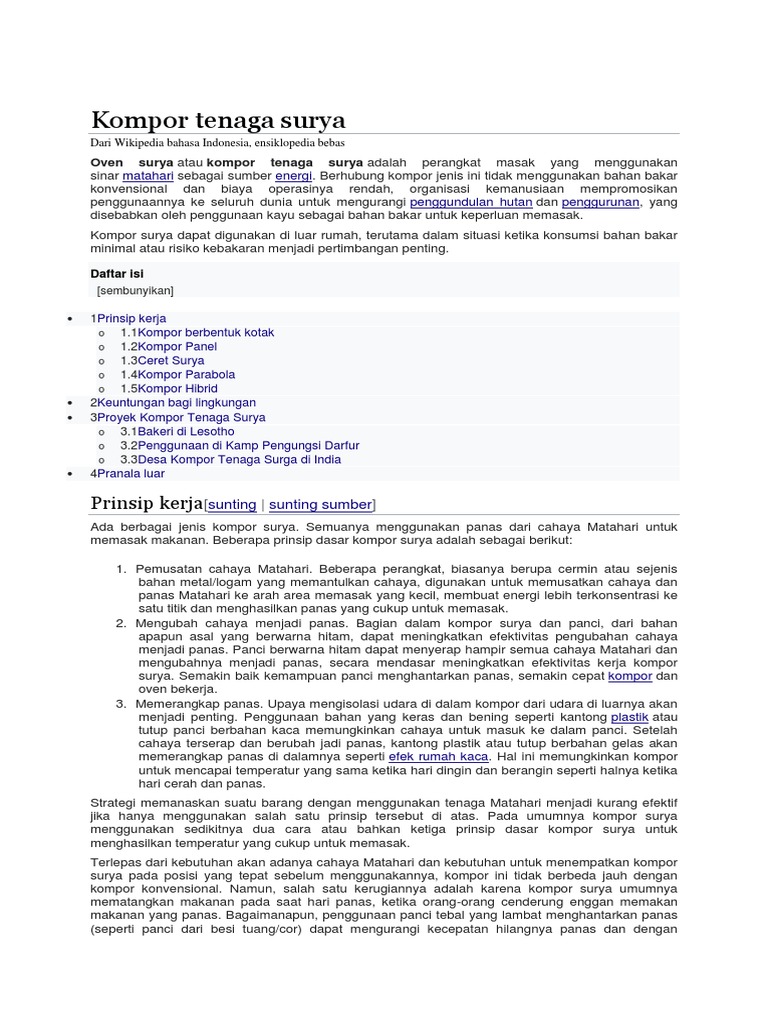 Ujilah kompor tenaga surya buatan kalian. Kompor ini bagus buat kami, karena dengan kompor ini, kami memasak dan mendidihkan air tanpa butuh kayu, gas atau minyak. Sebagaimana sudah kita ketahui bersama bahwa indonesia terletak di daerah katulistiwa dengan pancaran sinar matahari sepanjang tahun tanpa henti. Bahan yang dibutuhkan dalam pembuatan kompor payung tenaga surya adalah sebagai berikut : Kompor jenis mampu menghasilkan panas yang sangat tinggi dan memasak dengan cepat, namun senantiasa membutuhkan pengaturan dan pengawasan agar dapat beroperasi dengan aman. Kompor parabola tenaga surya, daya kompor, efisiensi termal abstract solar radiation generates the heat as a source of energy that can be collected into a single point so that it is able to cook water using a tool named mirror parabolic reflector. Prinsip kerja kompor tenaga surya. Venus kompor tenaga surya mengunakan 1.5m reflektor disk ,mampu menghasilkan ±1500watt daya energi. Cara gunakan kompor mudah orang sekarang semakin bisa menggunakan kompor ini, dan lebih tertarik karena bisa digunakan dengan mudah, jelas morteza yang juga membuat kompor. Disini ane mau menjajaki kemungkinannya. Misalnya kompor tenaga surya (matahari). Di ghana, wanita penduduk desa zouzugu mencegah dracunculiasis dan berbagai macam penyakit yang ditularkan melalui media air dengan mempasturisasikan air oven surya atau kompor tenaga surya adalah perangkat masak yang menggunakan sinar matahari sebagai sumber energi. Sel tersebut berperan untuk menangkap panas matahari yang nantinya akan diubah menjadi sebuah energi listrik.